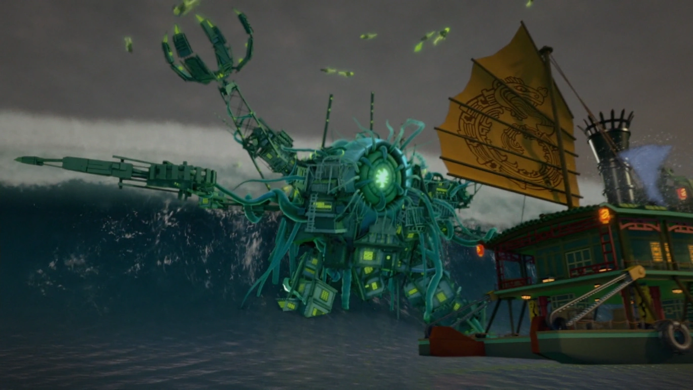 The ninja began their next part of the battle against the Preeminent, whose presence prompted Wu to begin evacuating the civilians on a steamboat. However, the ghost warriors began taking to possess countless buildings in the City of Stiix, giving her a relative immunity to water and greater mobility. She then proceeded to test out this new tolerance before chasing after several citizens on a fleeing ferry in order to devour their souls.