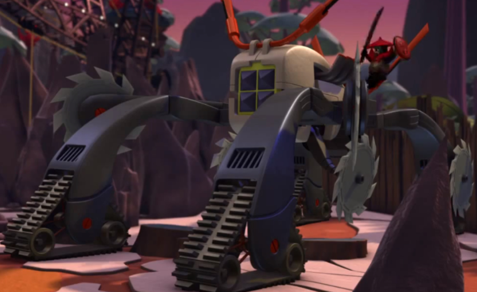 After watching the ninja escape from his camp, Garmadon orders the Stone Army to catch the ninja. They get away in the Earth Driller and are pursued by a hopper and some Warrior Bikes. Kozu pursued the ninja along the coast, but Cole turned the driller around, charged at the hopper, went up a ramp, then drilled into the ground under the hopper. Kozu screamed with anger and the hopper stomped on the ground several times. Once the Stone Army caught up to the ninja, Kai destroyed some Warrior Bikes and the hopper put out the fire. It then pursued the ninja up the mountain, but Kai caused a landslide and stopped the chase.
